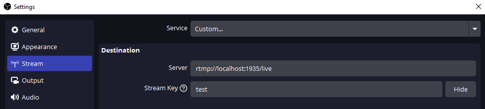Once the two services are up and running, you can now start streaming to your newly launched RTMP server at this endpoint:
