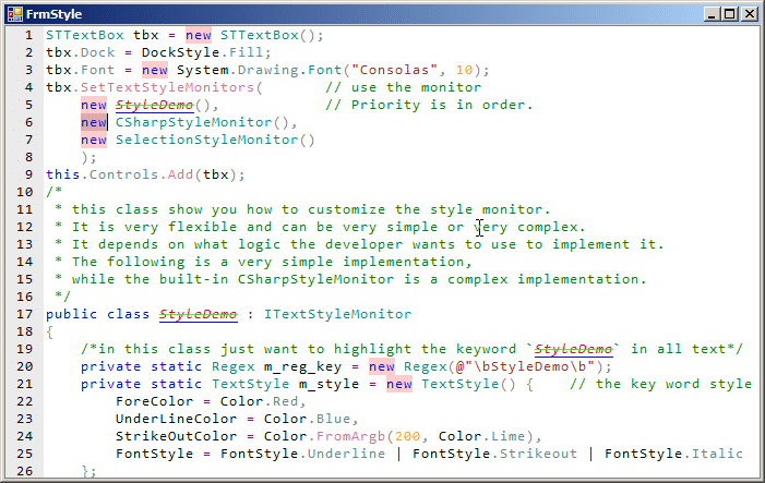 You can also customize text styles, by implementing the ITextStyleMonitor