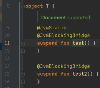 This plugin generates the non-suspend bridge function with the same signature (visible only from Java)