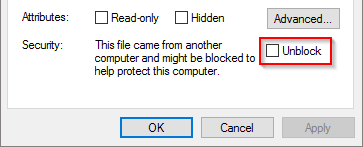 Check if Windows blocked downloaded dll file by going to Properties window of the file (Right click -> Properties) and if it's blocked unblock it using this check box: