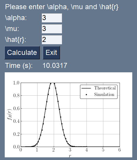 Entering values for \alpha \mu, and the root mean sqaure of the signal \hat{r}: