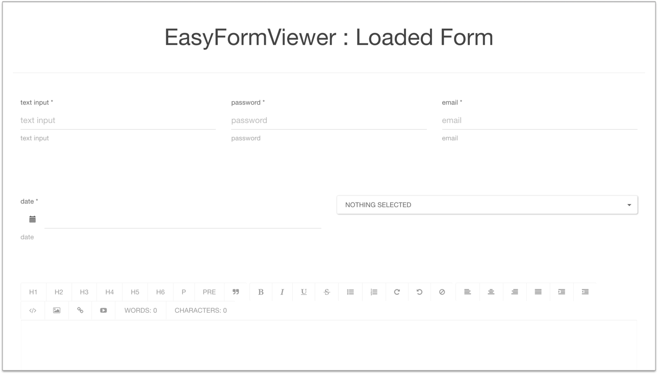 : easy form generator fields model - just bind it to easy form viewer directive, then it will render (without all unecessary decoration β generator useful only β):