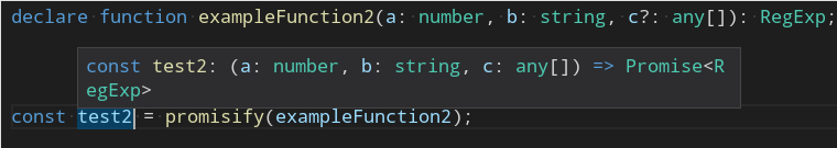 const test = numArgs(exampleFunction); type Promisified<T extends Function> =