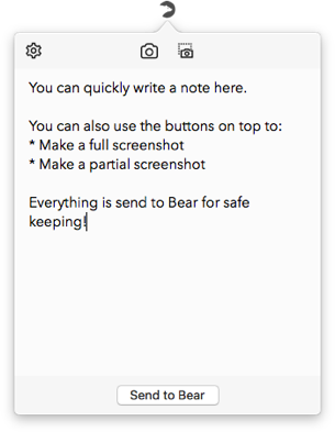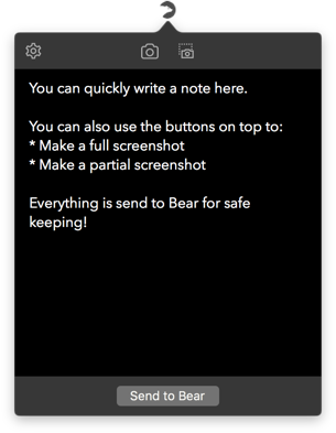 Quickly create notes/screenshots from your menubar and send them to Bear.