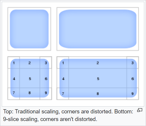 This is done by scaling, tiling, or otherwise transforming only the connecting pieces of a sprite element, but keeping corners unchanged.