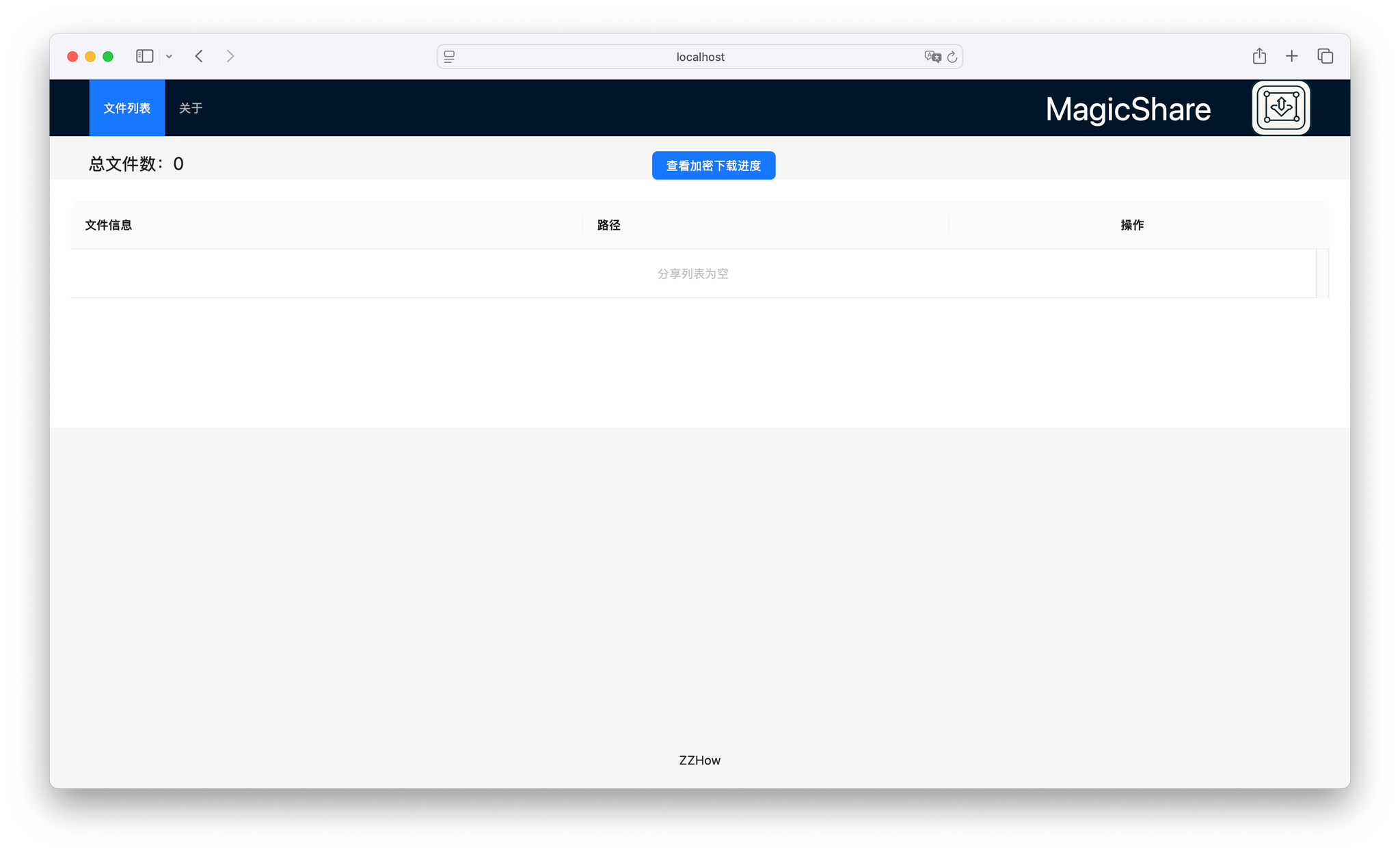 - 单击 ”加密下载“ 使用 MagicShare 加密下载器通过 WebSocket 协议并使用 RSA+AES 混合加密下载文件,不支持同时加密下载多个文件。