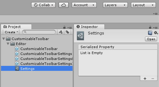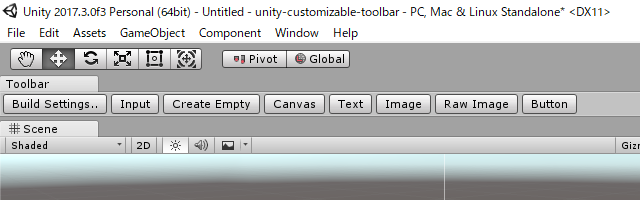 https://github.com/baba-s/unity-customizable-toolbar/blob/master/CustomizableToolbar.unitypackage?raw=true - Import the downloaded "UnityCustomizableToolbar.unitypackage" into the Unity project.