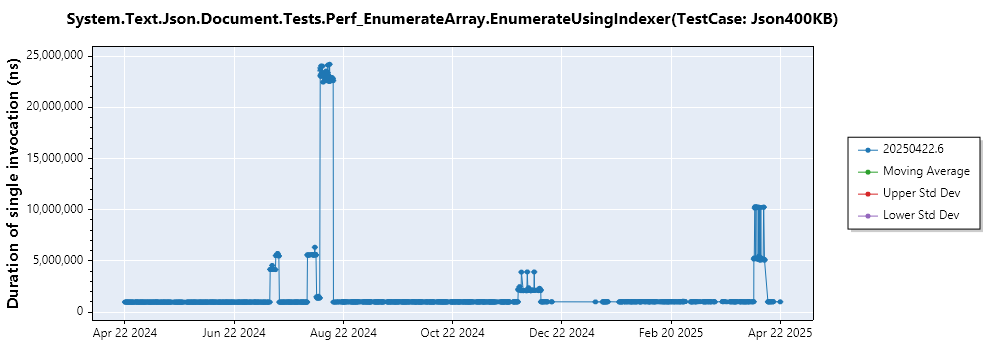 System.Text.Json.Document.Tests.Perf_EnumerateArray.EnumerateUsingIndexer(TestCase: Json400KB)