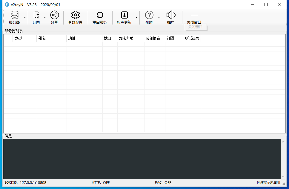 双击打开v2rayN,可以看到如下程序主界面。