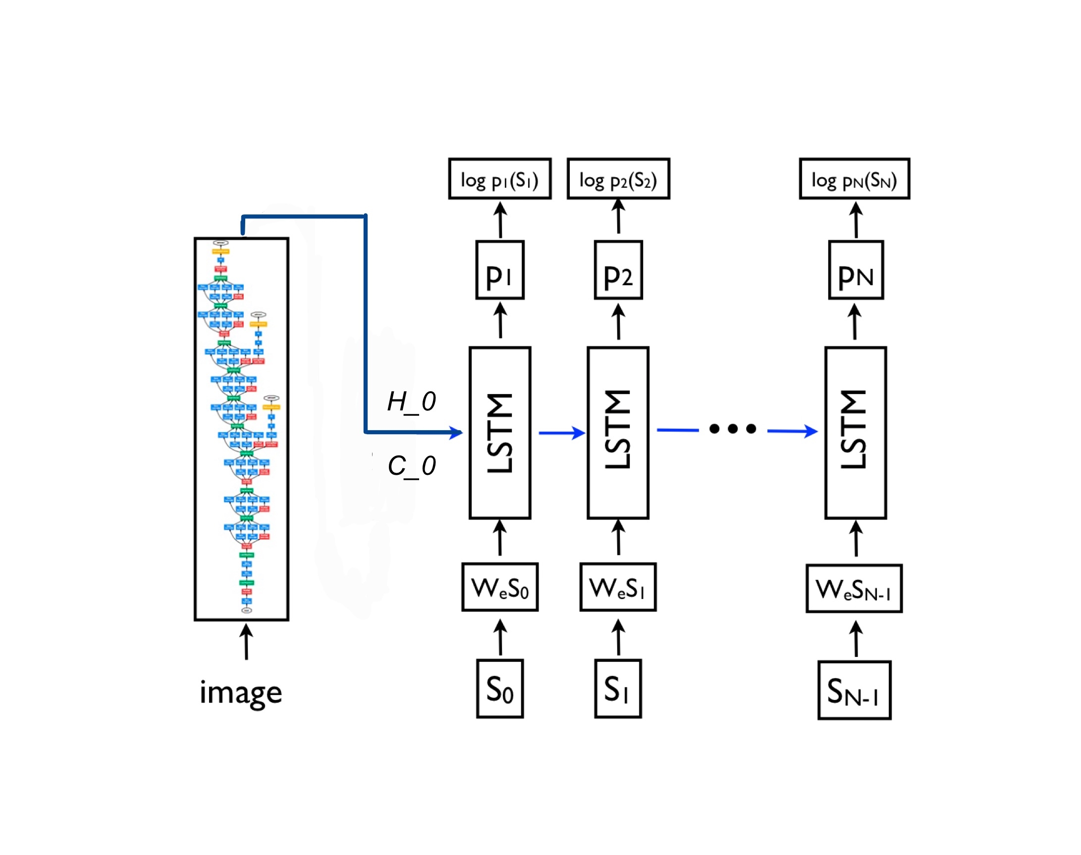RNetvHC initialize at time t_0 both the hidden and cell state with the image context retrieved by the ResNet