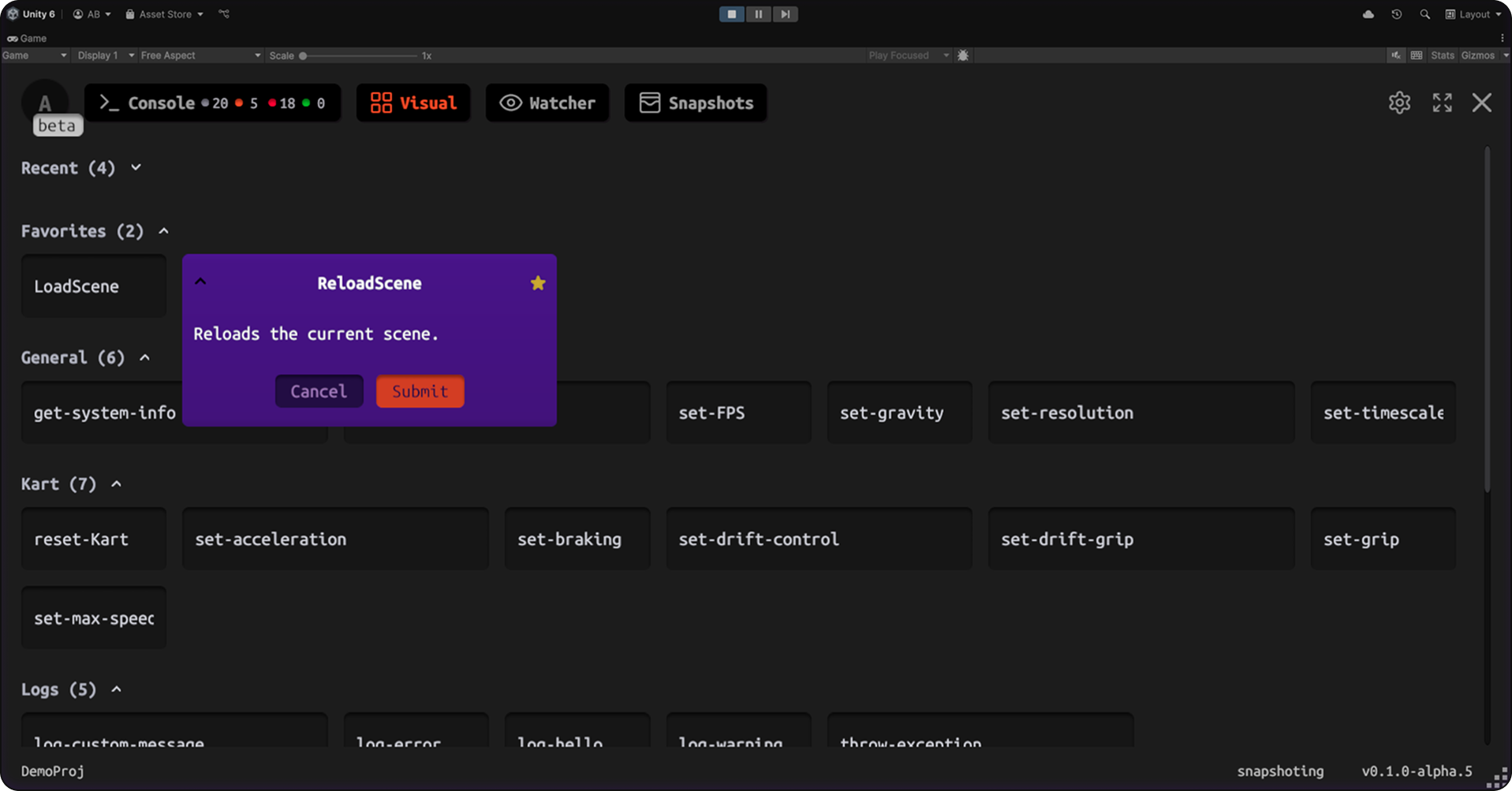 One-click snapshots: logs + screenshot from your Unity game.