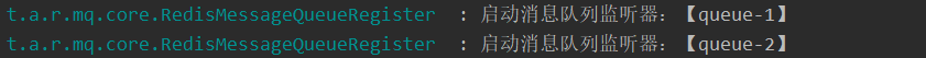 完成以上步骤后启动测试项目redis-mq-test,可以看到如下日志,表示消息队列监听已启动成功