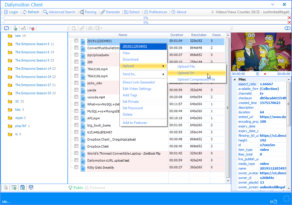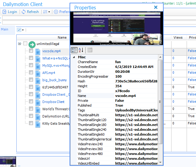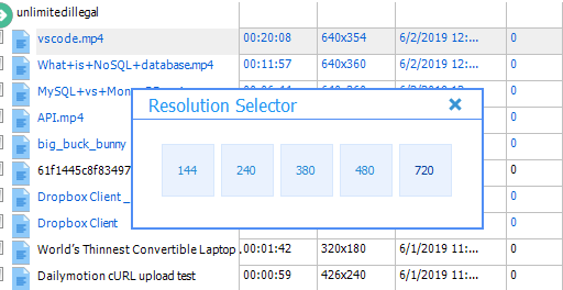 - Send public video from dailymotion account to Supported Cloud Services with ability to specify transferred video resolution