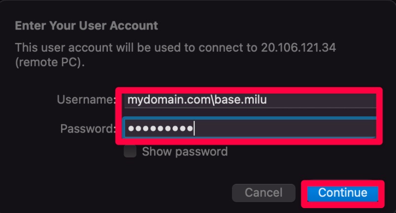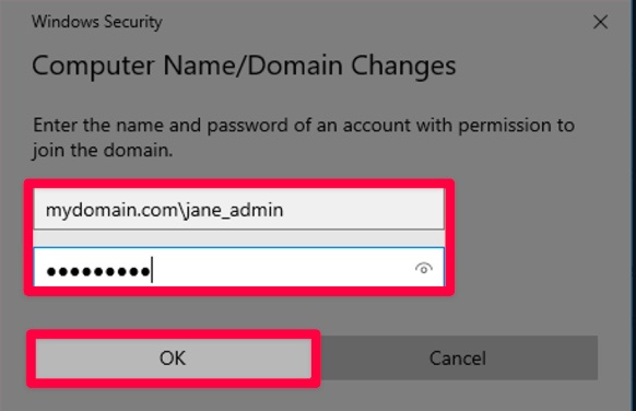 When prompted, you can just go ahead and enter the Username as mydomain.com\jane_admin and enter the password.