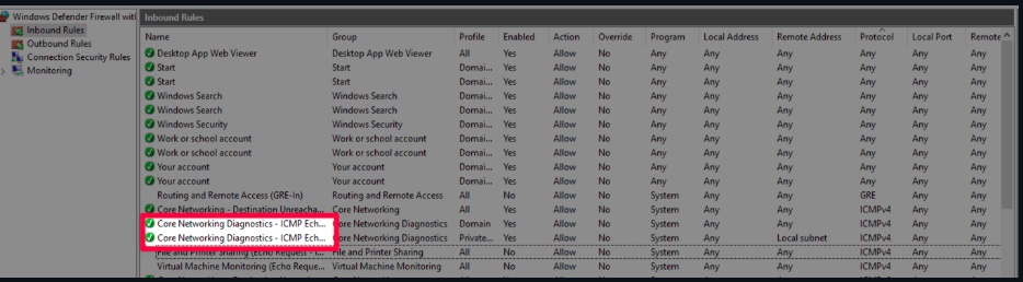 Enabling these rules will allow ping requests to pass through the firewall.