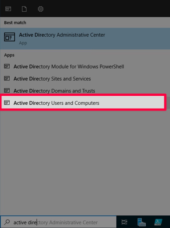 From the dropdown menu, select Active Directory Users and Computers.