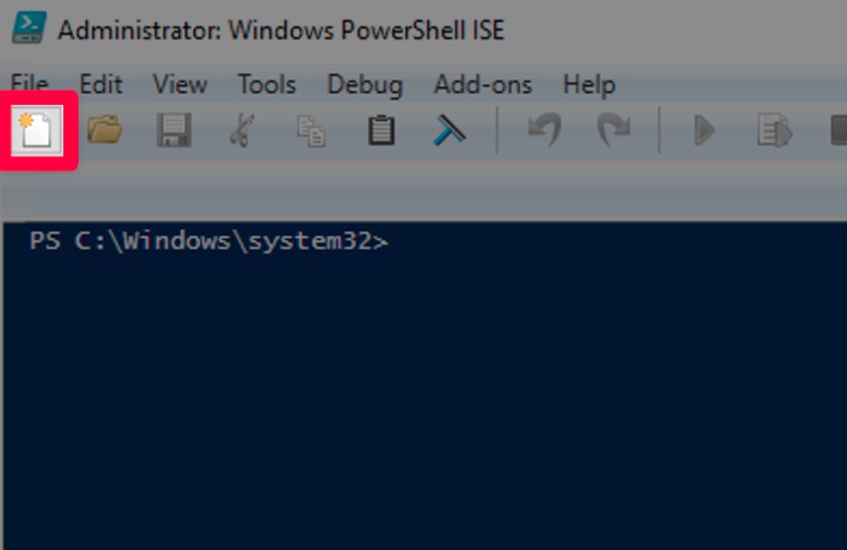 In the top-left corner of the PowerShell ISE window, click "New Script" to open a blank script tab.