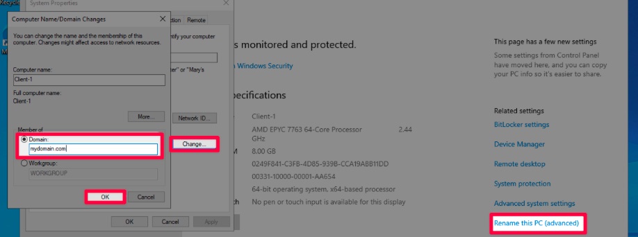 This will join Client-1 to the domain as part of mydomain.com.