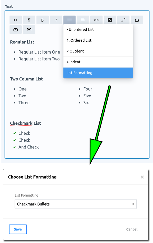 { "label": "Checkmark Bullets", "class": "checkmarks" }