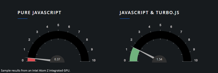 turbo.js is a small library that makes it easier to perform complex calculations that can be done in parallel. The actual calculation performed (the kernel executed) uses the GPU for execution. This enables you to work on an array of values all at once.