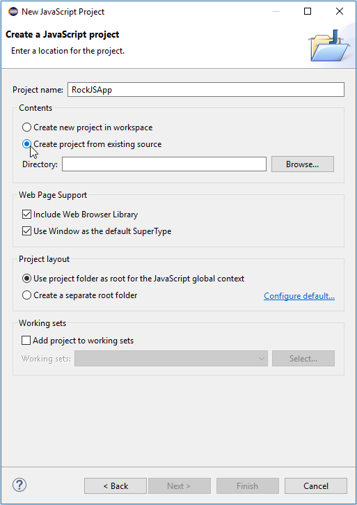 A most of popular IDEs allows to configure project building process. It allows to be ease for development process by using of RockJS CLI for deployment. Eclipse is one of the most popular IDE for Web. So, it will be taken as example.