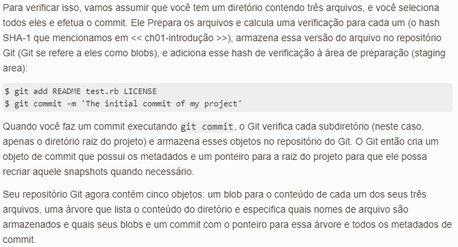 - O quadrado azul armazena o nome dos arquivos que foram commitados e aponta para o conteúdo desses arquivos.